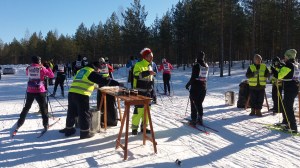 Kuninkaanlähteen kohdalla hiihtäjien urakka oli vasta alussa. Pakkasen kirjomia partoja ja silmäripsiä näkyi tänäkin vuonna. Niitä yritettiin sulattaa talkoolaisten voimin toivottelemalla ahkerasti hyviä matkatoivotuksia ja tarjoilemalla lämmintä urheilujuomaa, mehua ja vettä. Lähdöt tapahtuivat varuskunnasta kello 7 ja 11. Ensimmäisessä lähdössä hiihdettiin perinteisellä ja toisessa vapaalla tyylillä. Molemmissa lähdöissä kärki oli tässä kisan ensimmäisessä huoltopisteellä noin 26 minuuttia lähdön jälkeen.