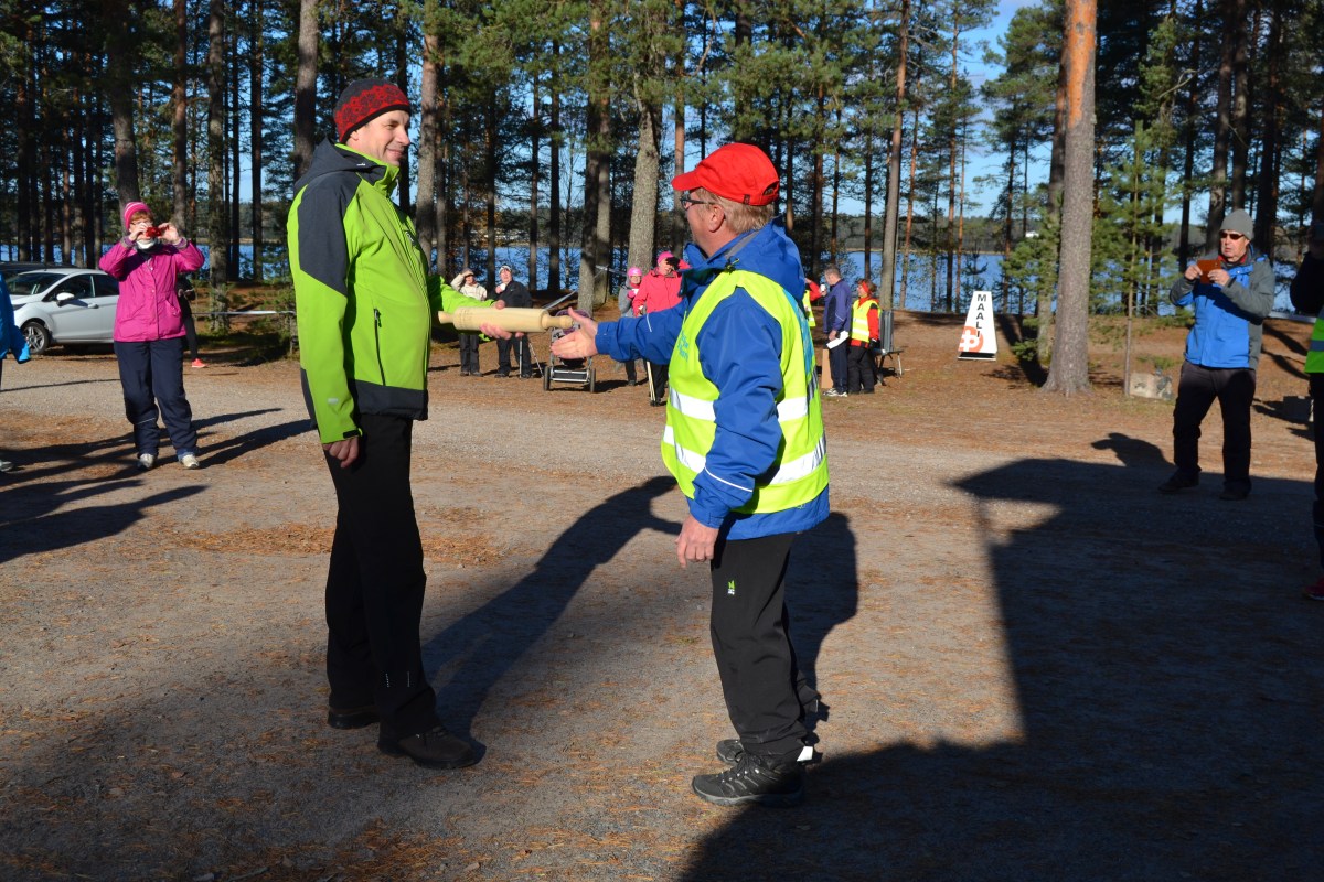 Ruskaretki 2015. Camp President. Ruskaretken vuoden 2016 järjestelyt otti vastaan Korvaluoman kylä. Kapulan otti vastaan puheenjohtaja Jari Kivistö Korvaluoman kyläyhdistyksestä. Oikealla Niinisalon kyläyhdistyksen puheenjohtaja Hannu Vienola.